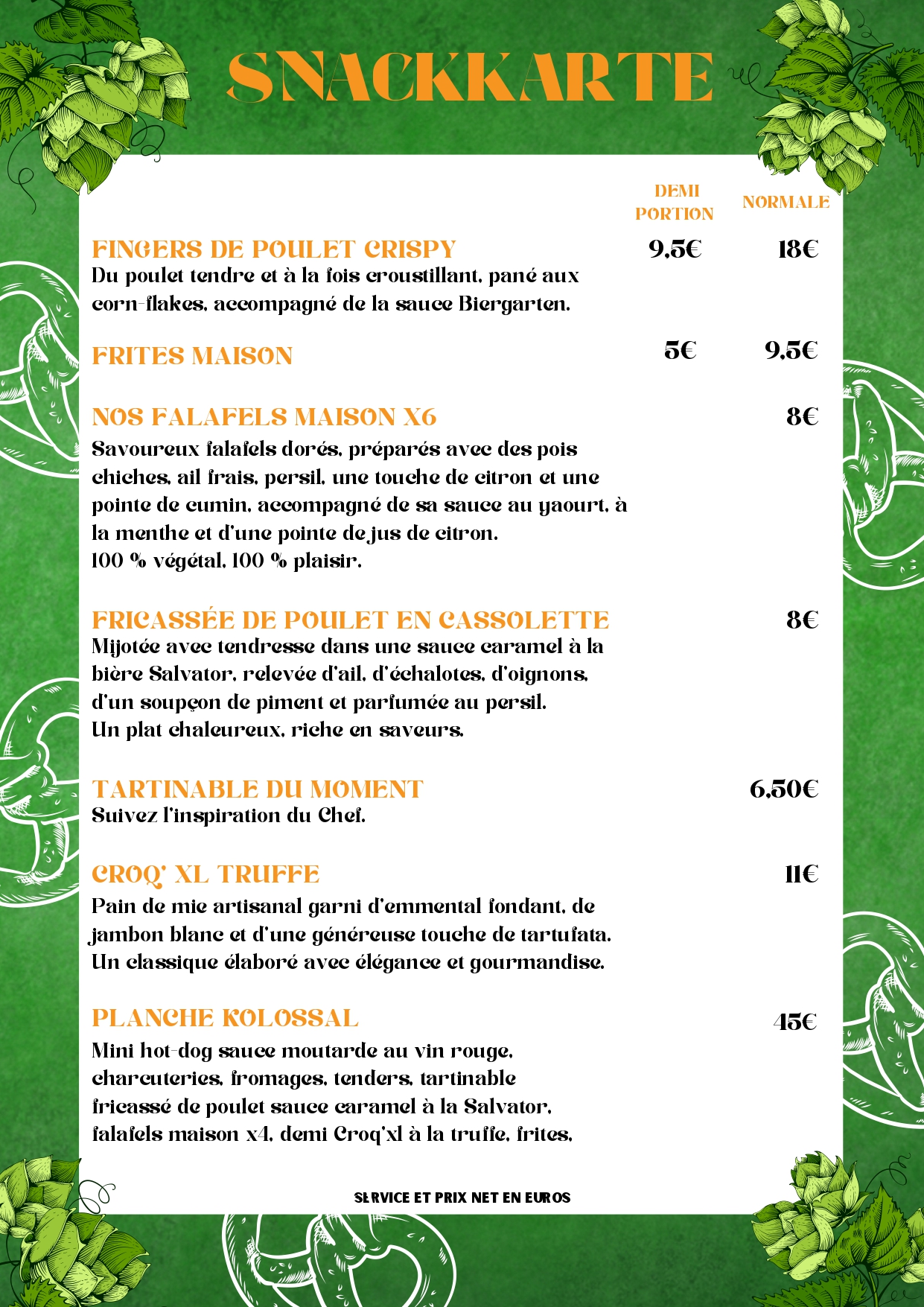 Découvrez la carte du Biergarten by le rhino.